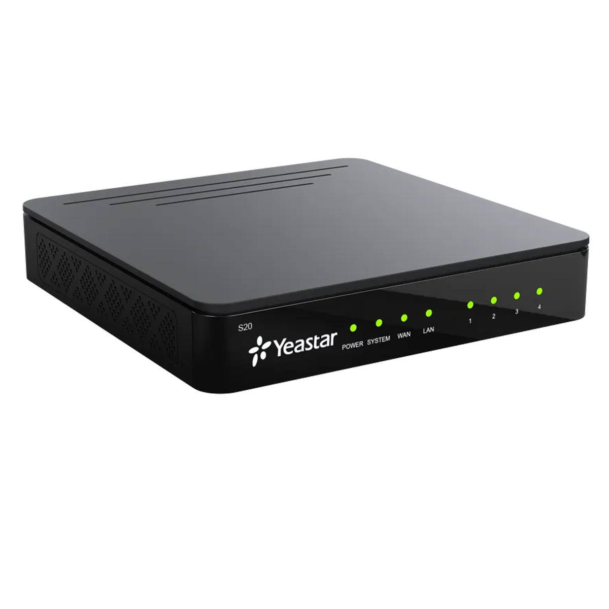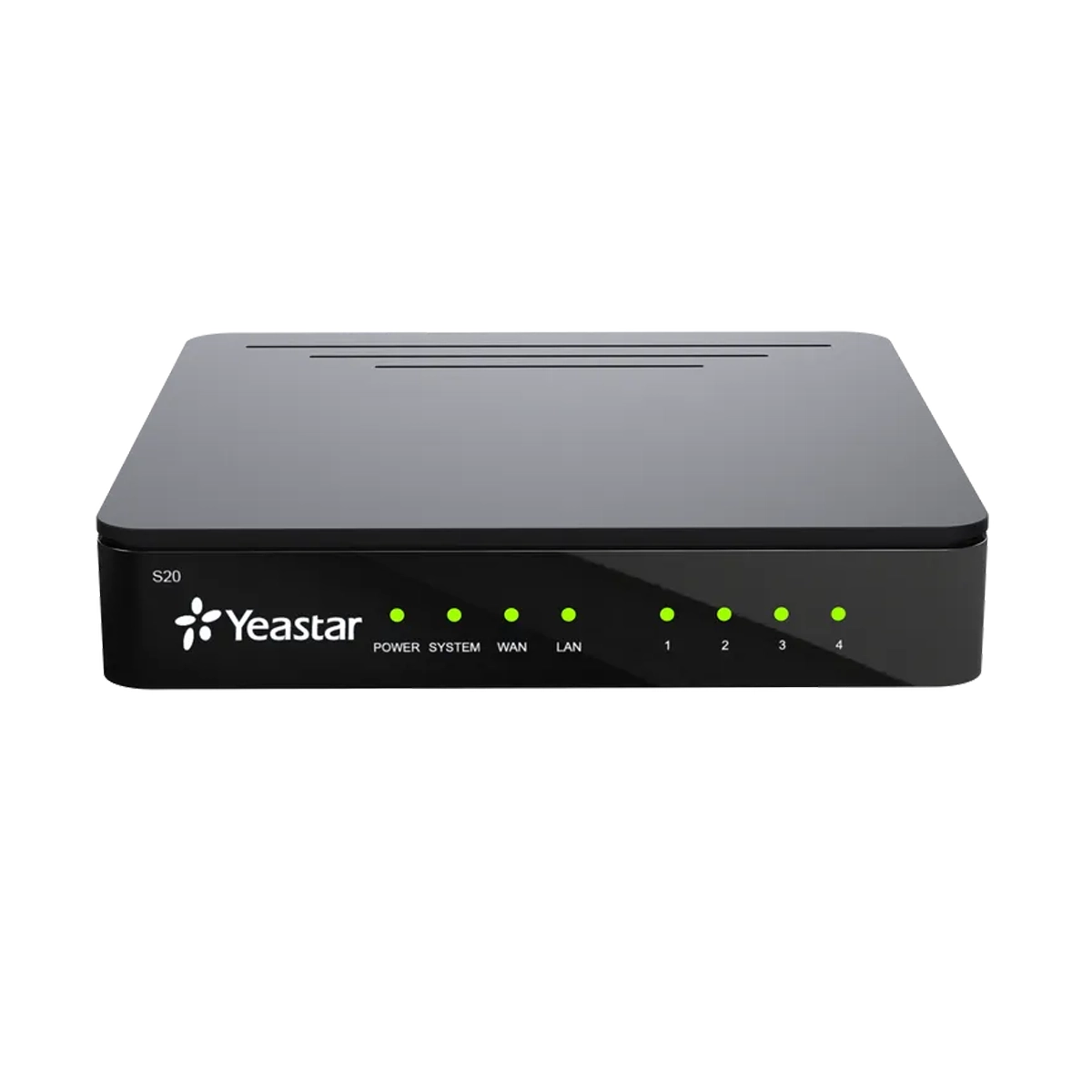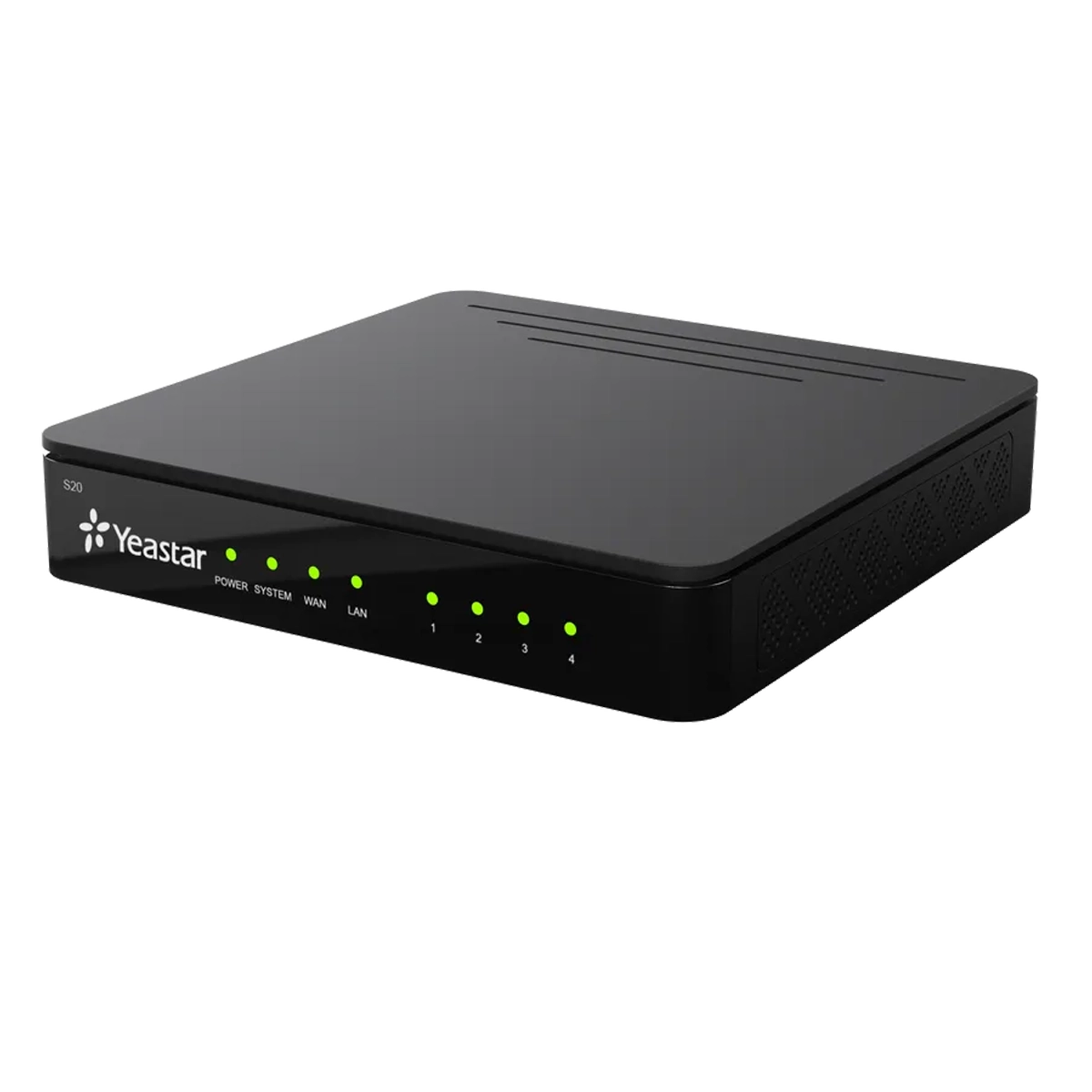 Le modèle S20 Voip PBX de la marque Yeastar peut être utilisé par 20 utilisateurs avec 10 appels simultanés et 4 postes FXS,et une conception modulaire de 2 fentes pour module flexible, 4 ports FXS/FXO et BRI, et 1 canal GSM/3G/4G) qui permet d’enregistrer automatiquement des appels et les stocker localement sur une carte TF.